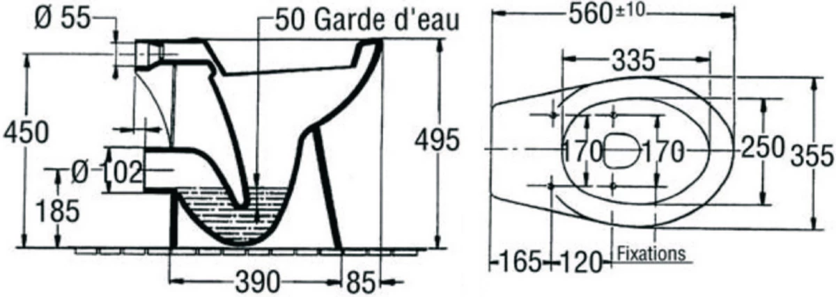 - TYPE DE PRODUIT: Cuvette WC sur pied avec alimentation indépendante